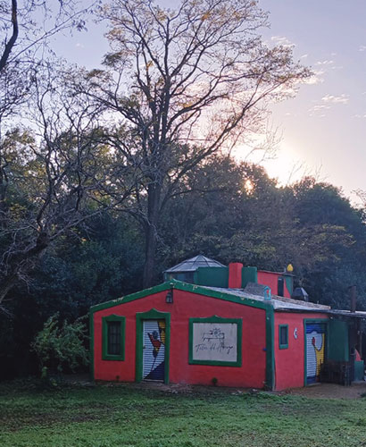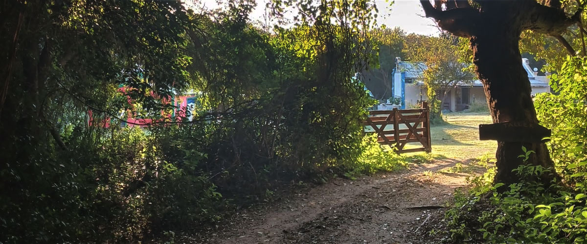 En un rinconcito de Achiras, al sur de Córdoba, entre el monte y un arroyo, está el taller: un refugio lleno de colores, ideas y silencios que inspiran. Es un espacio donde la imaginación vuela libre, entre caballos que pastan cerca y mi perro Pinto, siempre atento.